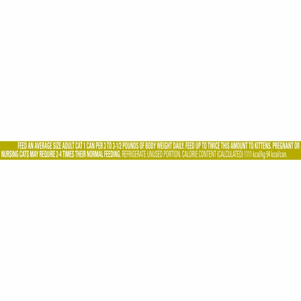 Feed an average size adult cat 1 can per 3-3 1/2 pounds of body weight daily. Feed up to twice this amount to kittens. Pregnant or nursing cats may require 2-4 times their normal feeding. Refrigerate unused portion.