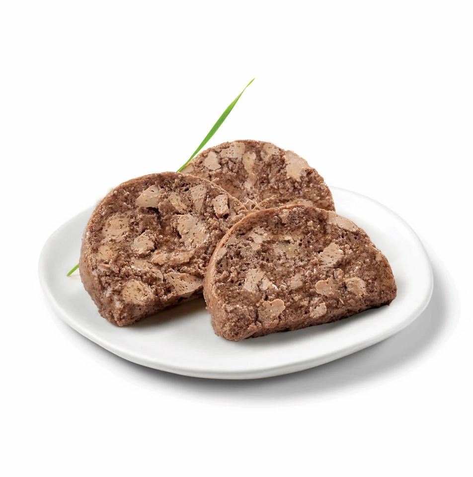 - Finely ground pate complements the chicken chunks for a unique taste