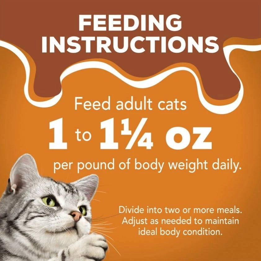 Feed adult cats 1 – 1 1/4 oz per lb. of body weight daily. Divide into two or more meals. Refrigerate unused portion. Always provide fresh water for your pet.