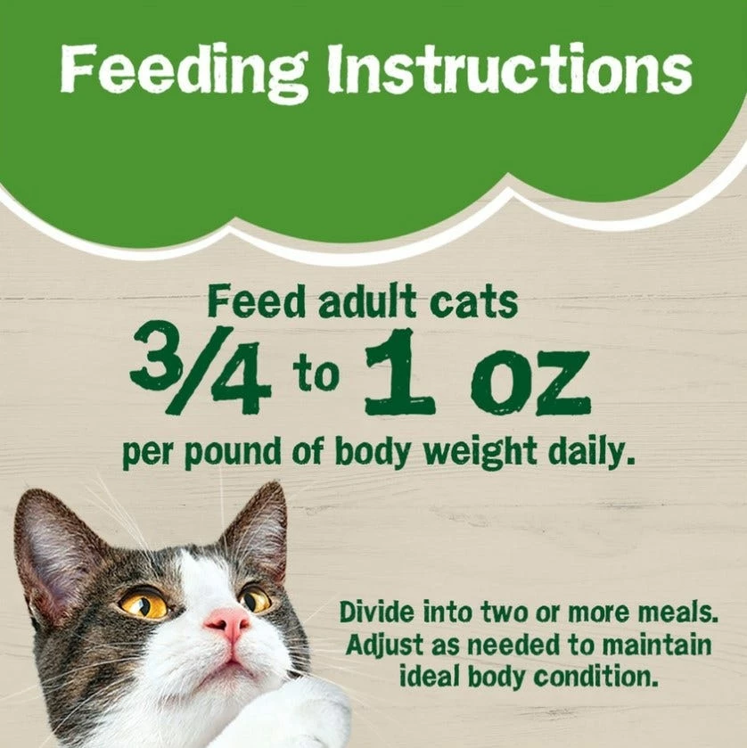 Feed adult cats 3/4 – 1 oz per pound of body weight daily. Divide into two or more meals.
