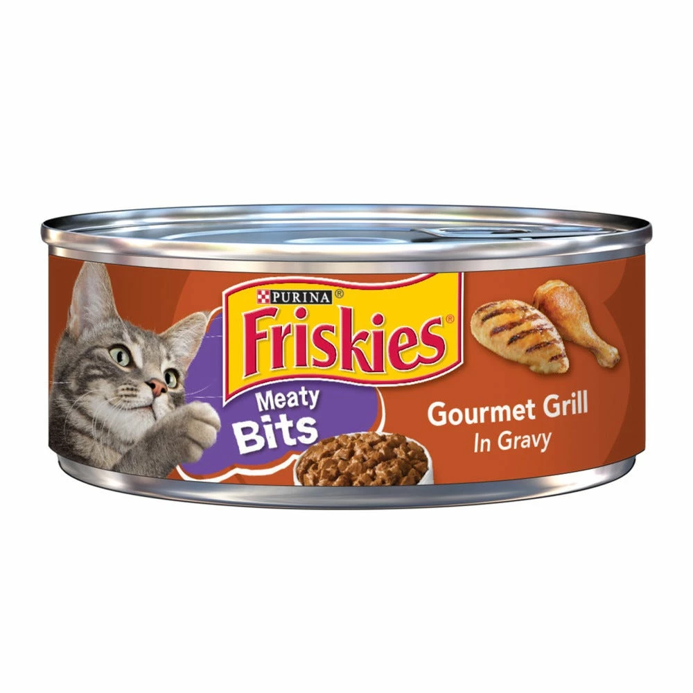 Feed your favorite feline’s craving for savory poultry with Friskies Meaty Bits Gourmet Grill Canned Cat Food. Real poultry delivers the yummy goodness your cat will adore, and the tender, bite-sized chunks offer a pleasing texture she’s sure to purr for. The irresistible aroma and savory, mouthwatering gravy will have her licking her dish clean every time. Formulated to deliver 100% complete and balanced nutrition, this delicious food is fortified with essential vitamins and minerals to support the needs of adult cats.