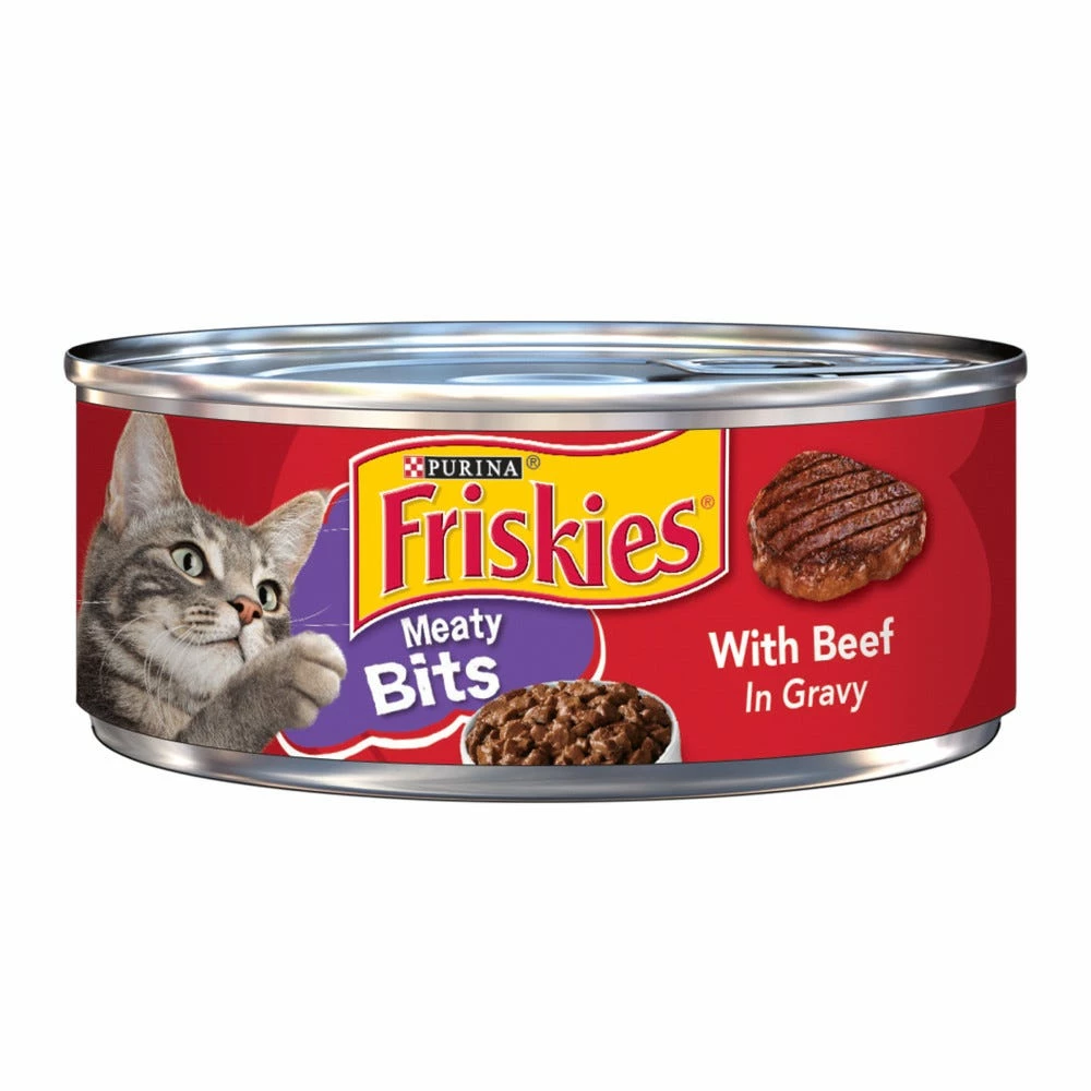 Satisfy your four-legged friend’s craving for savory goodness with Friskies Meaty Bits With Beef in Gravy Canned Cat Food. Real beef delivers the meaty flavor your cat will love, and the tender, bite-sized chunks offer a pleasing texture he’s sure to purr for. The irresistible aroma and savory, mouthwatering gravy will have him licking his dish clean every time. Formulated to deliver 100% complete and balanced nutrition, this delicious food is fortified with essential vitamins and minerals to support the needs of adult cats.