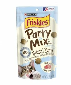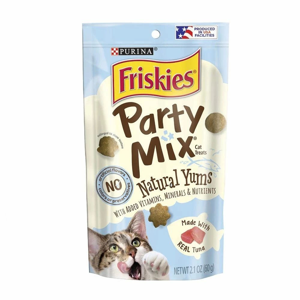 Turn ordinary moments into special shared celebrations by offering your cat Friskies Party Mix Natural Yums With Real Tuna With Added Vitamins, Minerals & Nutrients cat treats. Made with real tuna to tempt even the finickiest feline, Natural Yums spark your cat’s excited anticipation as soon as she hears you open the pouch. We craft our tasty, natural cat treats from real ingredients and without artificial flavors, colors or preservatives. We add vitamins, minerals and nutrients to create a snack you can feel great about serving. The fun shapes keep your curious kitty engaged, and the crunchy texture helps her teeth stay clean. Friskies Party Mix Natural Yums are manufactured in USA facilities, so you can enjoy the peace of mind that comes from knowing exactly where your cat’s treats are manufactured. To keep snack time exciting, let your cat try our other delicious Natural Yums varieties.