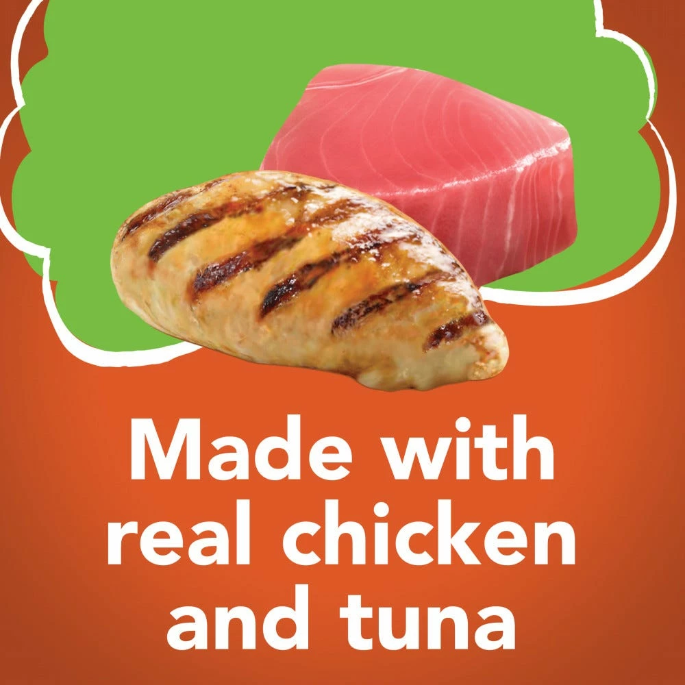 Pamper your cat with Purina Friskies Pate Chicken & Tuna Dinner wet cat food for dinner. Made with real chicken and tuna, which deliver high-quality protein to help support her muscles and an active lifestyle, this delicious pate is 100% complete and balanced for the growth of kittens and maintenance of adult cats. The smooth texture of the pate in this can is easy to chew and swallow by both kittens and older cats alike, while the paired flavors of enticing seafood and irresistible poultry create a taste cats love and that will bring her running when she hears the can open up at mealtime. Satisfy her cravings for a hearty, nutritious wet cat food with a recipe that’s carefully crafted to give her the nutrients she needs for her overall health and that has added vitamins and minerals to help keep her going strong at every life stage.