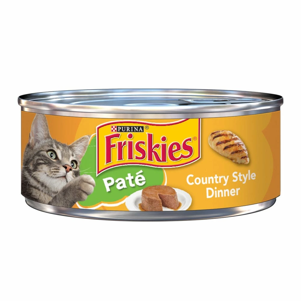 - This Friskies canned cat food is part of the complete line of Purina Friskies wet and dry cat foods and is packaged in recyclable cat food cans
