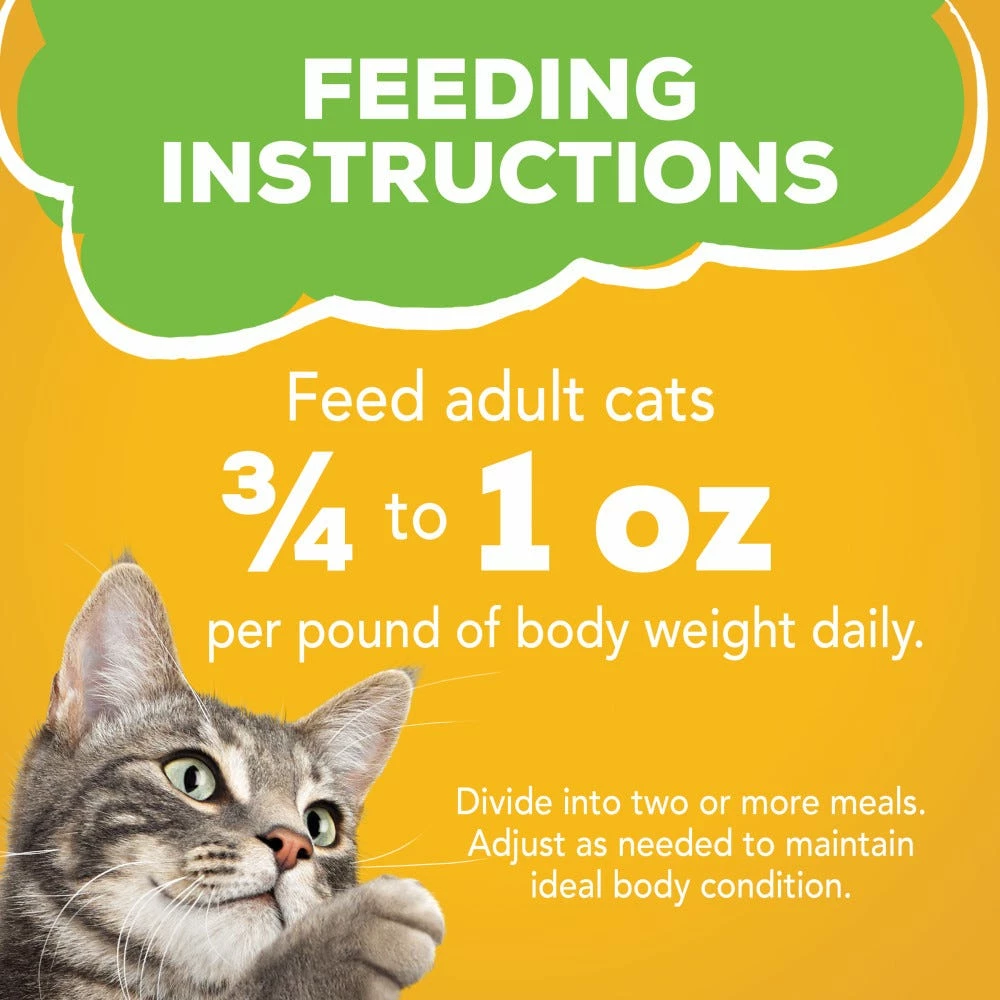 Feed Adult cats 3/4 – 1 oz per lb of body weight daily. Divide into 2 or more meals.