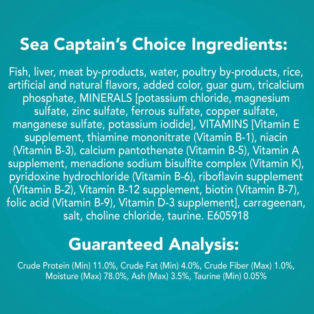 Set a course for delicious flavor adventures when you serve your cat Purina Friskies Pate Sea Captain’s Choice wet cat food. The enticing assortment of fish flavors is sure to make your cat purr with delight, and the smooth, moist pate gives her an irresistible texture she can enthusiastically sink her teeth into at mealtime. Open a can to let her detect the rich aroma, and watch as she prances to her dish in anticipation of a scrumptious meal. With 100% complete and balanced nutrition to support the growth of kittens and maintenance of adult cats, this recipe lets you feel confident she’s getting the nourishment she needs to continue her playful and active lifestyle. Say ahoy to delectable goodness when you offer up this Purina Friskies Pate variety, and show your darling cat you pay attention to her love of fresh seafood flavors.