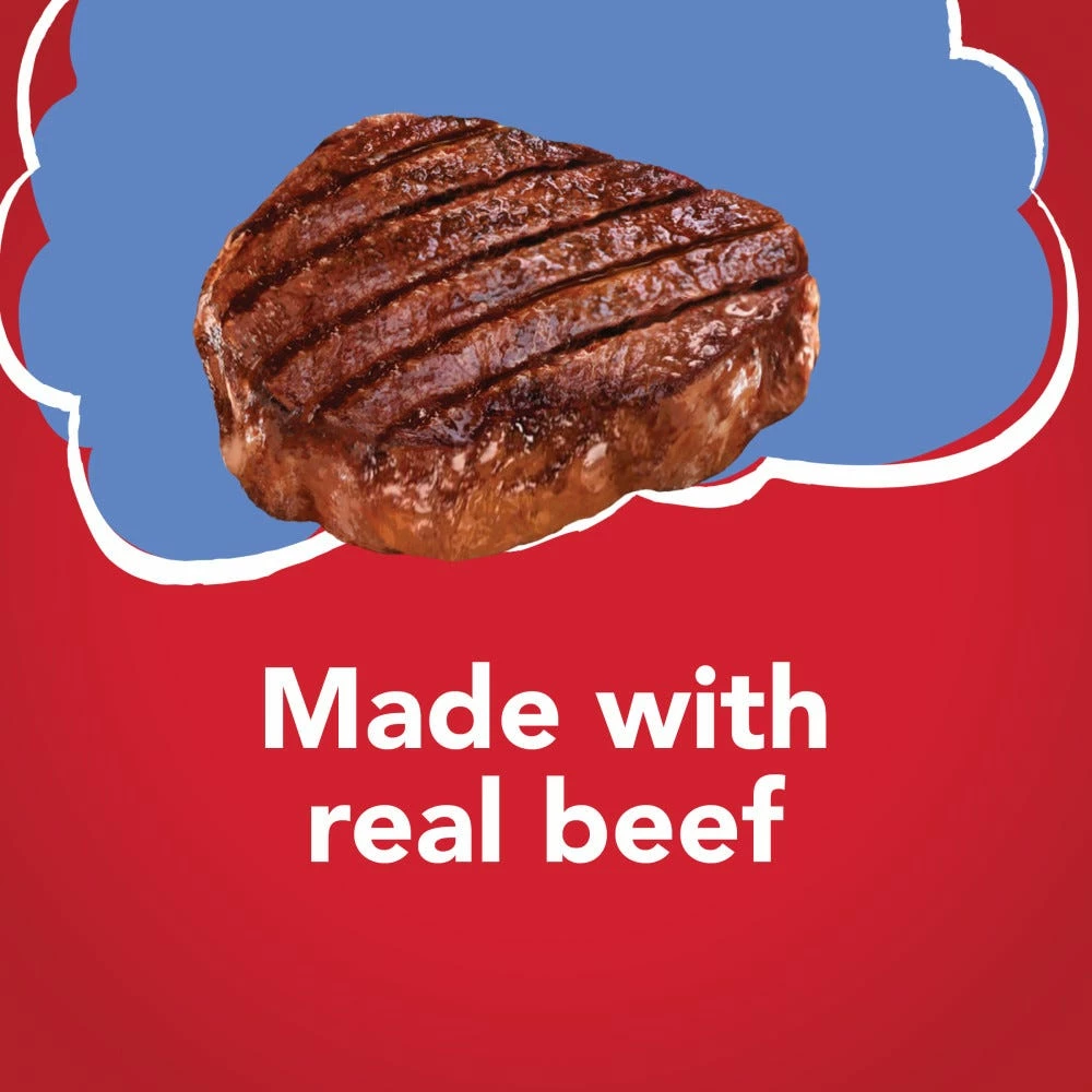 Give your pampered kitty something to purr about with this Purina Friskies Shreds with Beef in Gravy wet cat food. Ideal for both grown adult cats and growing kittens, this succulent beef cat food brings an explosion of meaty flavor to your feline’s mealtime menu, with real cuts of high-quality beef shredded to a cat-friendly texture that’s easy for her small mouth to handle. Rich gravy smothers this beef cat food, giving your cat’s meal a yummy finish that she’ll lap up until not a drop remains. Pop open the top of this delectable entree to release the savory beef aroma and send your kitty packing for her dish in anticipation of what’s to come. The meaty goodness leaves your cat circling your legs, hoping for more, and the 100% complete and balanced nutrition provided by each and every can shows her that she’s worth the extra effort.