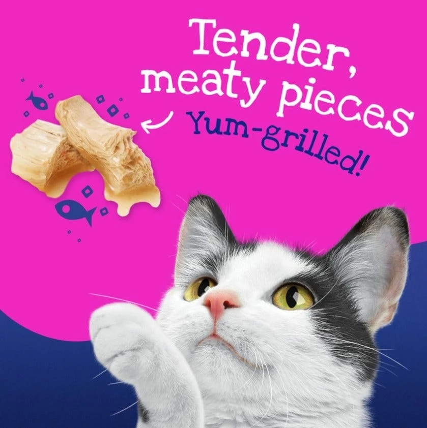 Water, chicken, meat by-products, wheat gluten, corn starch-modified, soy flour, artificial and natural flavors, wheat flour, tuna, sunflower oil, calcium sulfate, added color, MINERALS [potassium chloride, zinc sulfate, ferrous sulfate, manganese sulfate, copper sulfate, potassium iodide], powdered cellulose, choline chloride, Red 3, salt, taurine, VITAMINS [thiamine mononitrate (Vitamin B-1), Vitamin E supplement, niacin (Vitamin B-3), calcium pantothenate (Vitamin B-5), Vitamin A supplement, menadione sodium bisulfite complex (Vitamin K), pyridoxine hydrochloride (Vitamin B-6), riboflavin supplement (Vitamin B-2), Vitamin B-12 supplement, biotin (Vitamin B-7), folic acid (Vitamin B-9), Vitamin D-3 supplement]. A633019