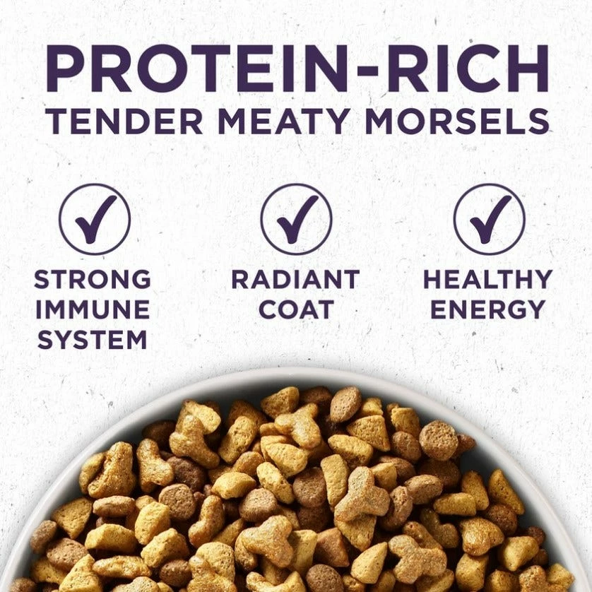 Chicken, Rice Flour, Corn Gluten Meal, Chicken By-Product Meal (Source of Glucosamine), Soybean Meal, Whole Grain Corn, Corn Germ Meal, Oat Meal, Vegetable Oil (Source of Medium-Chain Triglycerides), Whole Grain Wheat, Fish Meal (Source of Glucosamine), Pea Fiber, Poultry and Pork Digest, Beef Fat Naturally Preserved with Mixed-Tocopherols, Glycerin, Calcium Carbonate, Salt, Dried Egg Product, Mono and Dicalcium Phosphate, Caramel Color, Potassium Chloride, Dried Carrots, Dried Peas, Vitamins [Vitamin E Supplement, Niacin (Vitamin B-3), Vitamin A Supplement, Calcium Pantothenate (Vitamin B-5), Thiamine Mononitrate (Vitamin B-1), Vitamin B-12 Supplement, Riboflavin Supplement (Vitamin B-2), Pyridoxine Hydrochloride (Vitamin B-6), Folic Acid (Vitamin B-9), Vitamin D-3 Supplement, Menadione Sodium Bisulfite Complex (Vitamin K), Biotin (Vitamin B-7)], Choline Chloride, Minerals (Zinc Sulfate, Ferrous Sulfate, Manganese Sulfate, Copper Sulfate, Calcium Iodate, Sodium Selenite), L-Lysine Monohydrochloride, L-Ascorbyl-2-Polyphosphate (Vitamin C), Sulfur, Garlic Oil. E418117.