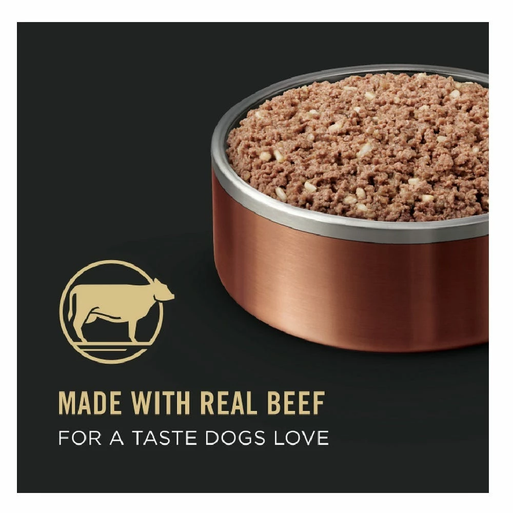 Discover where fantastic flavor meets wholesome nutrition for your pooch with Purina Pro Plan Beef & Rice Entree Classic Adult Wet Dog Food. Each ingredient in this premium dog food is chosen for a specific purpose to support your pal’s nose-to-tail well-being. Real beef is the #1 ingredient to provide high-quality protein. Then foods like highly digestible rice are blended in, helping create a tasty combo of tender texture and flavor. Nutrients nourish his healthy skin and soft coat. Plus, every serving delivers the optimal level of protein to him maintain an ideal body condition throughout a lifetime of fun adventures. With so much good stuff in every bite, this canned pate dog food supports your four-legged friend’s happy, playful days with outstanding nutrition plus exceptional taste.