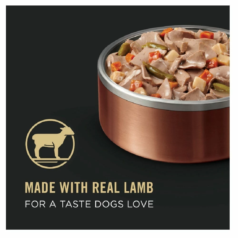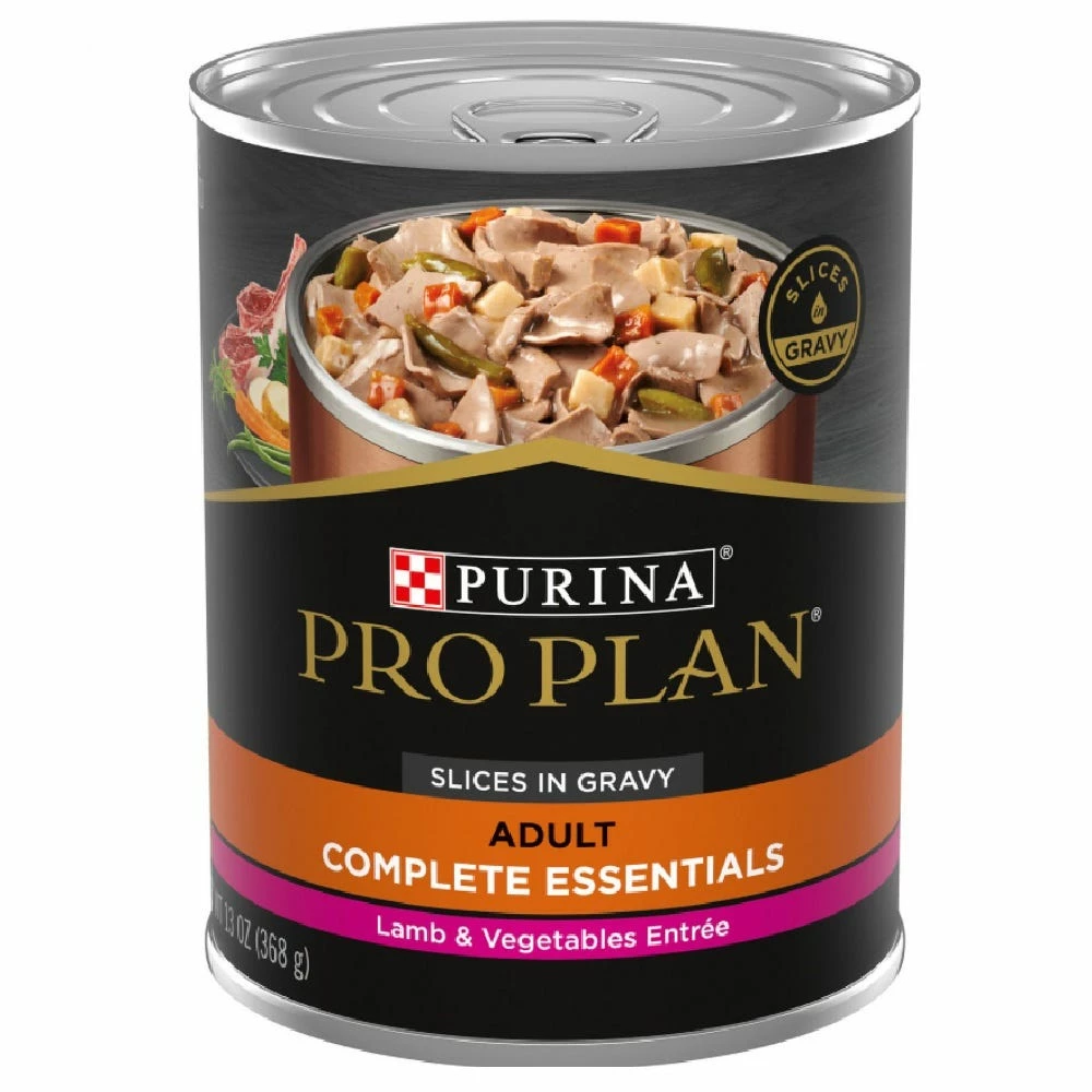 Serve your pup a slice of the good life Purina Pro Plan Lamb & Vegetables Entree Slices in Gravy Adult Wet Dog Food. Tender slices made with real lamb are served with a helping of savory dog food gravy. Dogs love the tasty flavor and tender texture of this pup-pleasing adult dog food pate. Even better, each ingredient is thoughtfully chosen for a specific nutritional or functional purpose in your furry pal’s life of adventure. Omega-6 fatty acids nourish his healthy skin and soft coat. Plus, every serving of this high protein dog food is packed with the optimal level of protein to help your four-legged friend keep up an ideal body condition throughout a lifetime of jumping and playing. With this much yummy flavor loaded into a premium dog food, your canine companion gets the taste he loves and the outstanding nutrition you want for him.