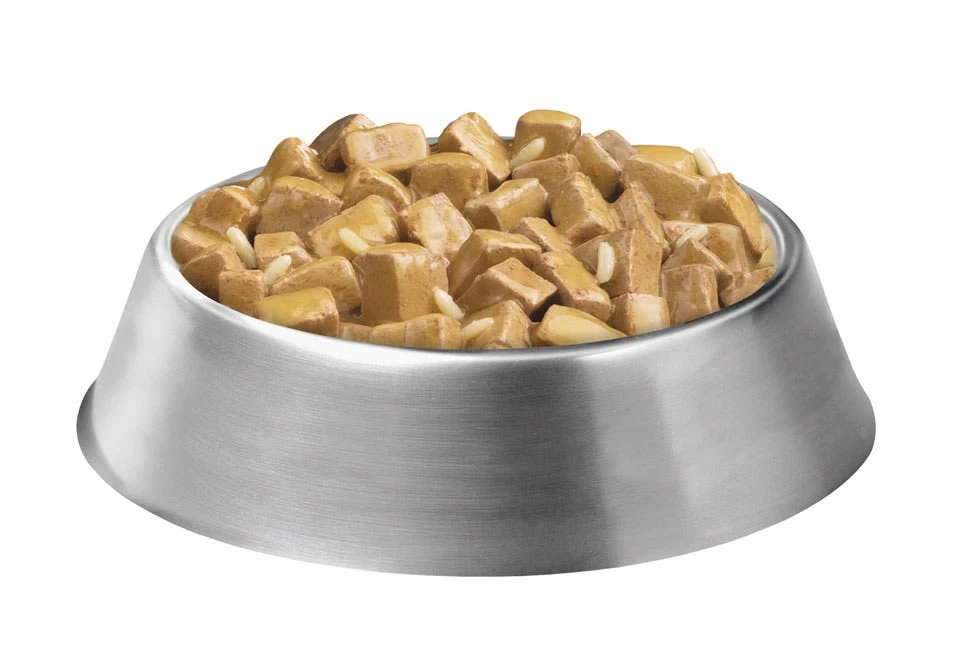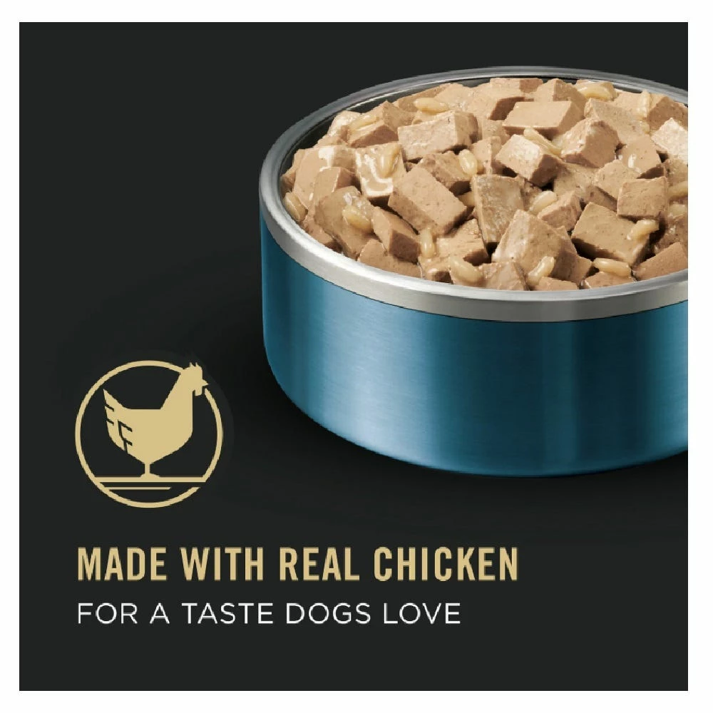 Set out a savory meal made for the big dogs like yours with Purina Pro Plan SPECIALIZED Adult Large Breed Chicken and Rice Entree Chunks in Gravy Adult Wet Dog Food. Made for large breeds, this canned dog food delivers a combo of quality ingredients chosen to support your big pal’s well-being. The tender chunks are made with real chicken, and rice is mixed in for a highly digestible source of energy. Plus, a helping of gravy adds a flavorful finish. Each serving is chock full of protein to promote muscle conditioning when combined with exercise on your dog’s daily adventures. And, he gets calcium and phosphorus to help keep his bones and teeth strong as well as omega-6 fatty acids to nourish his skin and soft coat. With complete and balanced nutrition for adult dogs over 50 pounds, this large breed dog food is bursting with the targeted nutrition your pal needs to jump, race and play. Try this chicken dog food risk free for a tasty meal that nourishes your bud from nose to tail.