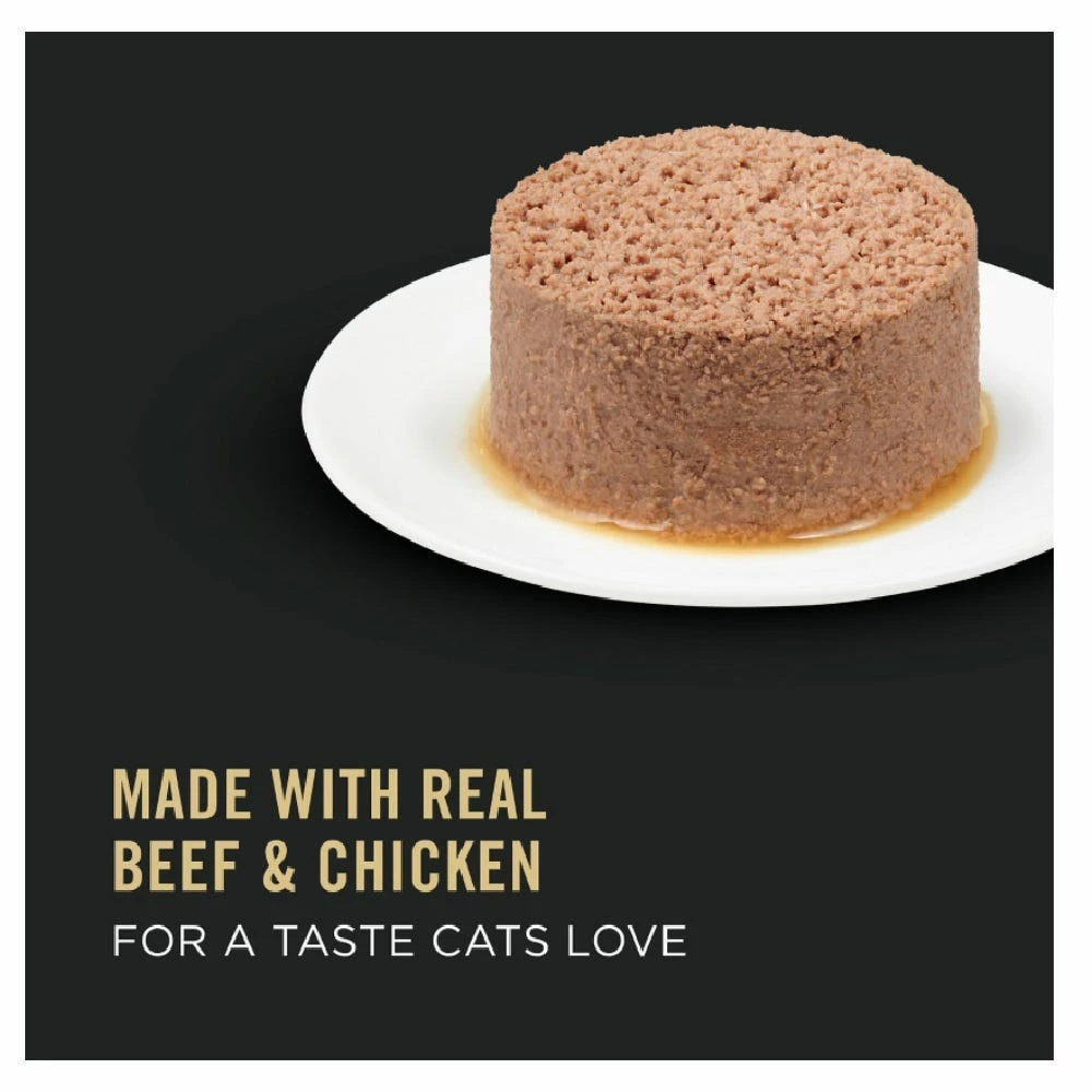 - Real beef and chicken come together in a yummy combo, helping create a high protein cat food loaded with the tender texture and taste kitties love