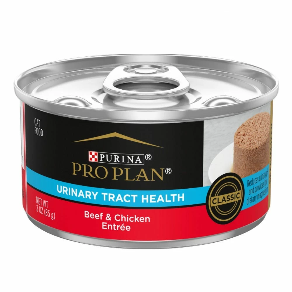 Give your cat extra-care nutrition for her specific needs with Purina Pro Plan FOCUS Urinary Tract Health Formula Beef & Chicken Entrée adult wet cat food. This recipe features high-quality sources of protein, including real beef and chicken. Every high-quality ingredient in this wet cat food formula is carefully selected for a specific purpose, so you can feel good about what goes into her dish every day. We formulate this wet cat food to help maintain urinary tract health by reducing urinary pH and providing low dietary magnesium. Every bite of this urinary tract cat food delivers the delicious taste and tempting texture cats love, keeping your feline friend engaged during feedings. Fill her dish with this canned wet cat food for urinary health as part of her daily feeding routine, and rest easy knowing she’s getting a tasty meal that delivers complete and balanced nutrition for adult cats.