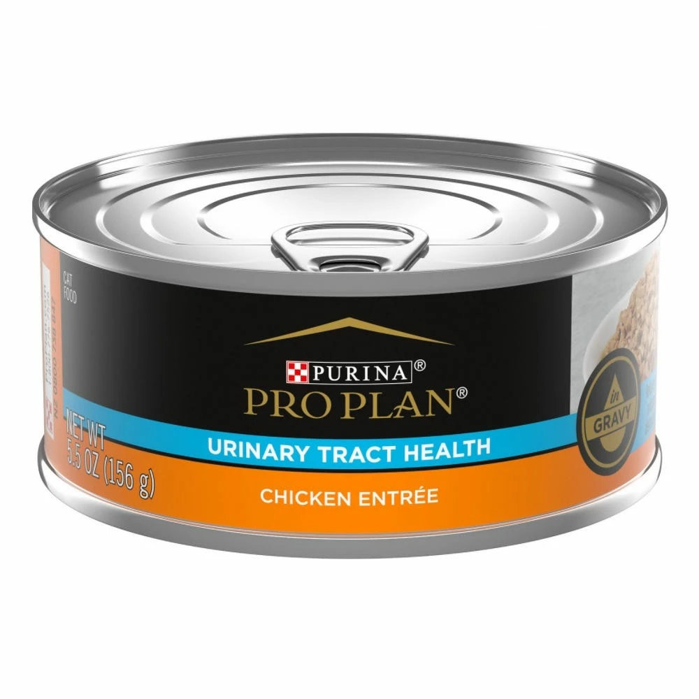 Give your darling cat extra-care nutrition to meet her specific needs with Purina Pro Plan FOCUS Urinary Tract Health Formula Chicken Entrée in Gravy adult wet cat food. This wet urinary tract cat food reduces urinary pH and provides low dietary magnesium to help maintain her urinary tract health. Every serving provides 25 essential vitamins and minerals plus taurine, an amino acid, to help support her overall health and wellness, and this recipe is formulated to help support your cat companion’s healthy immune system for added peace of mind. This urinary cat food features real chicken and other high-quality ingredients you can trust, while the delicious taste and tender texture help to keep your cat engaged during feedings. Give your cat the nutrition she needs to be her best self when you fill her dish with this Purina Pro Plan wet cat food recipe at mealtime every day.