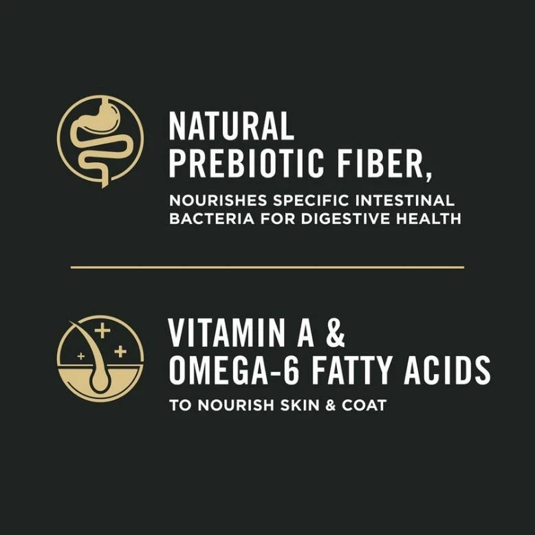 Delight your cat’s senses with Purina Pro Plan COMPLETE ESSENTIALS Shredded Blend Salmon and Rice Formula adult dry cat food. This super-premium cat food is formulated with 36 percent protein to meet her unique nutritional needs, and its high-quality sources of protein include real salmon as the first ingredient. Featuring crunchy kibble and tender, meaty shreds for the taste and texture cats love, this dry cat food gives your faithful feline a reason to run to her dish every day. To help support your cat’s digestive health, this wholesome formula contains guaranteed live probiotics, as well as natural prebiotic fiber sourced from chicory root. Antioxidants, vitamin A, and linoleic acid, an omega-6 fatty acid, found in this dry cat food help her thrive and ensure she gets the advanced nutrition she needs to live a healthy, active life. Give your cat a delicious meal made with nutrition that performs when you serve this Purina Pro Plan COMPLETE ESSENTIALS formula.