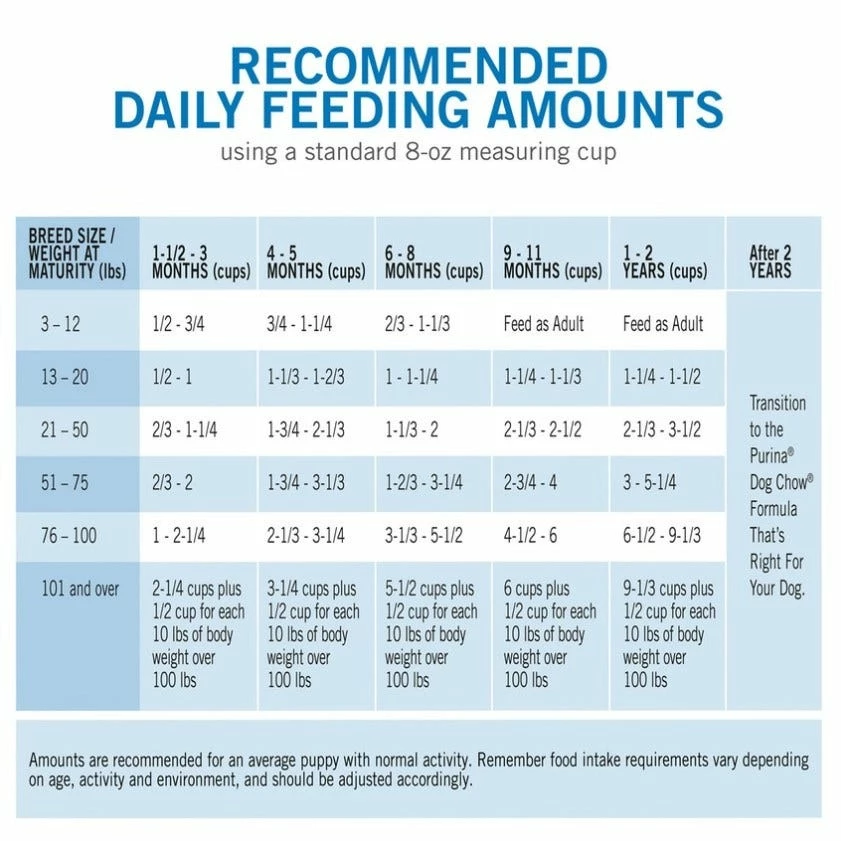 Provide the nutrition your puppy needs to get a great start in life with Purina Puppy Chow Complete With Real Chicken dry puppy food. Every serving of this puppy food contains 100% of the essential nutrients puppies require to grow big and strong, and the delicious taste gives him a reason to clean his bowl at every feeding. Tend to your growing pup’s nutritional needs through the vital early stages of his development with this dry puppy food, and take comfort in knowing he’s getting a highly-digestible formula he will look forward to eating every day. Packed with 30% more protein than the leading adult dog food, this recipe supports your puppy’s growing muscles, so he can keep up with his adventurous canine pursuits. Our employees don’t just make this Purina Puppy Chow recipe; they trust it enough to feed it to their own puppies every day, too. So dish up a serving of this Purina Puppy Chow puppy formula, and let him know you care about his health and happiness. Purina Puppy Chow Complete puppy food provides the Building Blocks of puppy nutrition to help lay the foundation for a healthy, active life. The Healthy Start blend provides high-quality protein, including real, American-raised chicken, DHA for brain and vision development, antioxidants like vitamin C, and 100% of the essential nutrients for your puppy’s first year.
