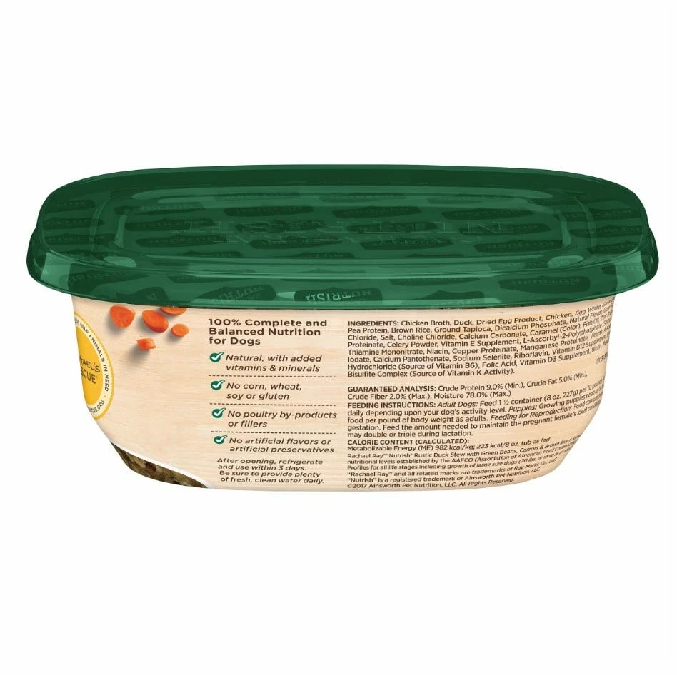 Rachael Ray™ Nutrish® Rustic Duck Stew Recipe is made with hearty pieces of duck mixed with green beans, carrots and brown rice, all simmered in a hearty, homestyle gravy.