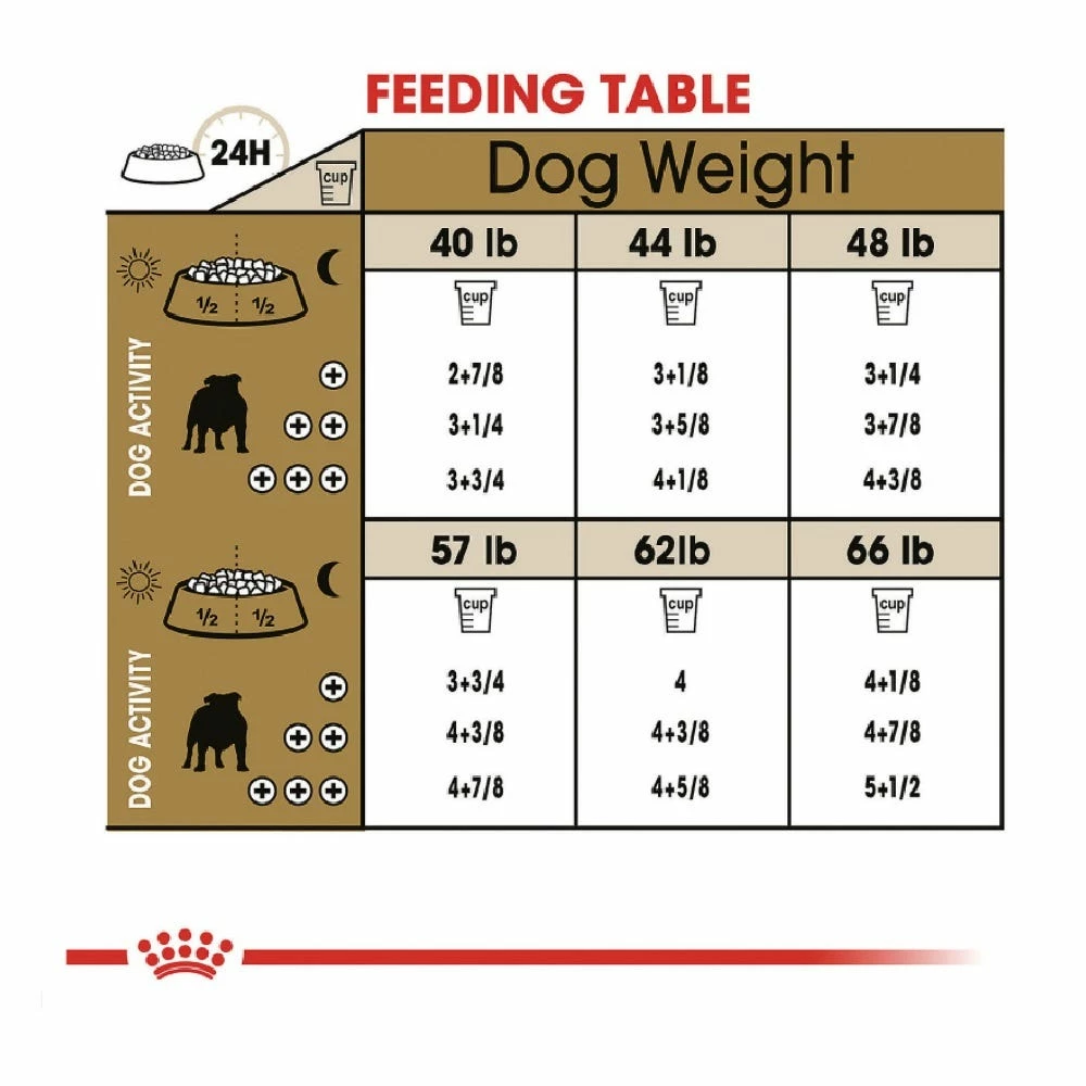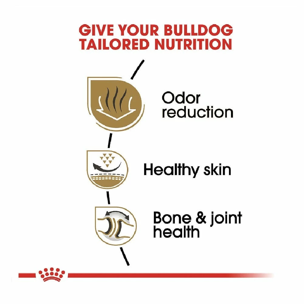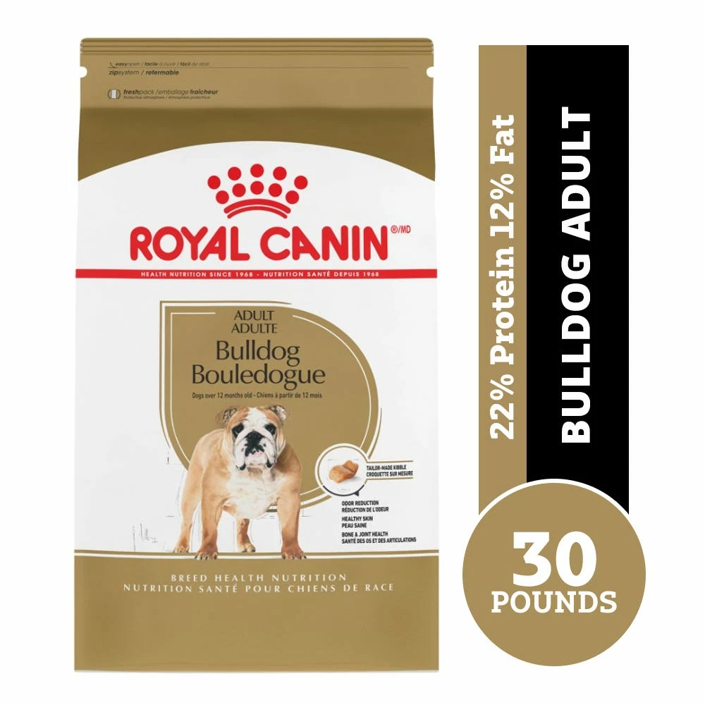 - Royal Canin Bulldog Adult dry dog food is designed to meet the nutritional needs of purebred Bulldogs 12 months and older