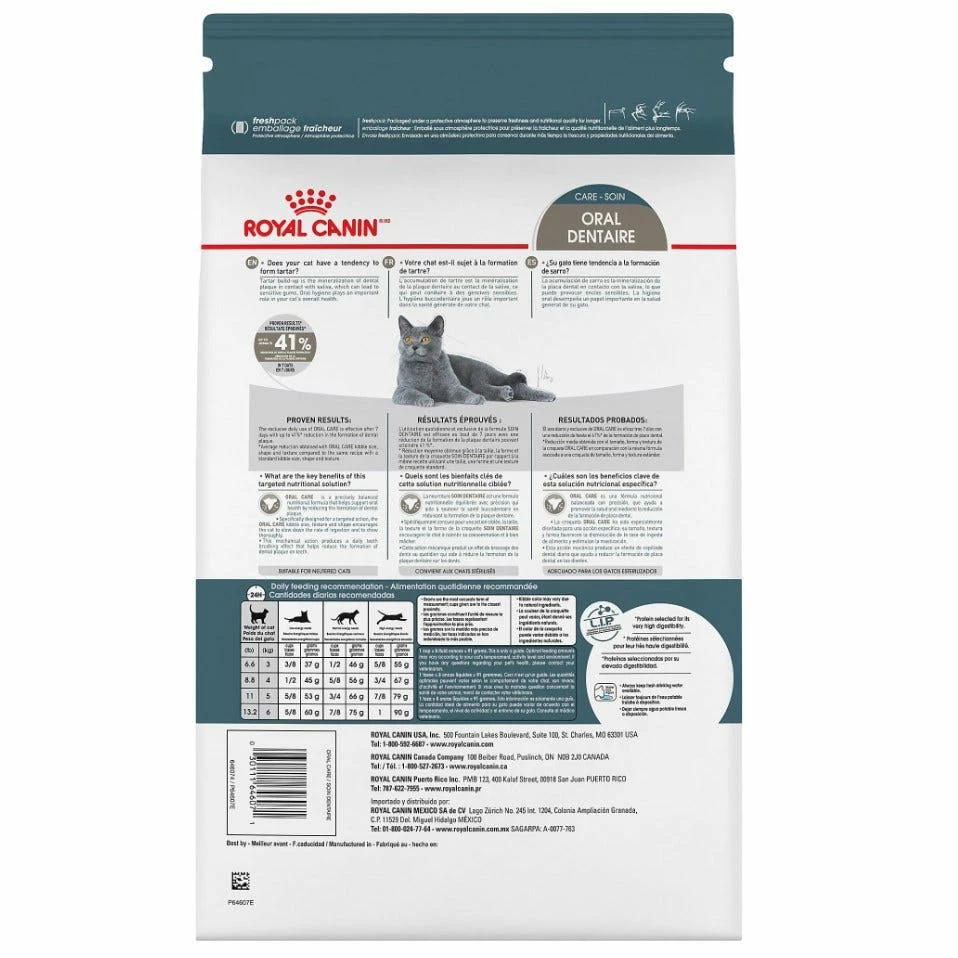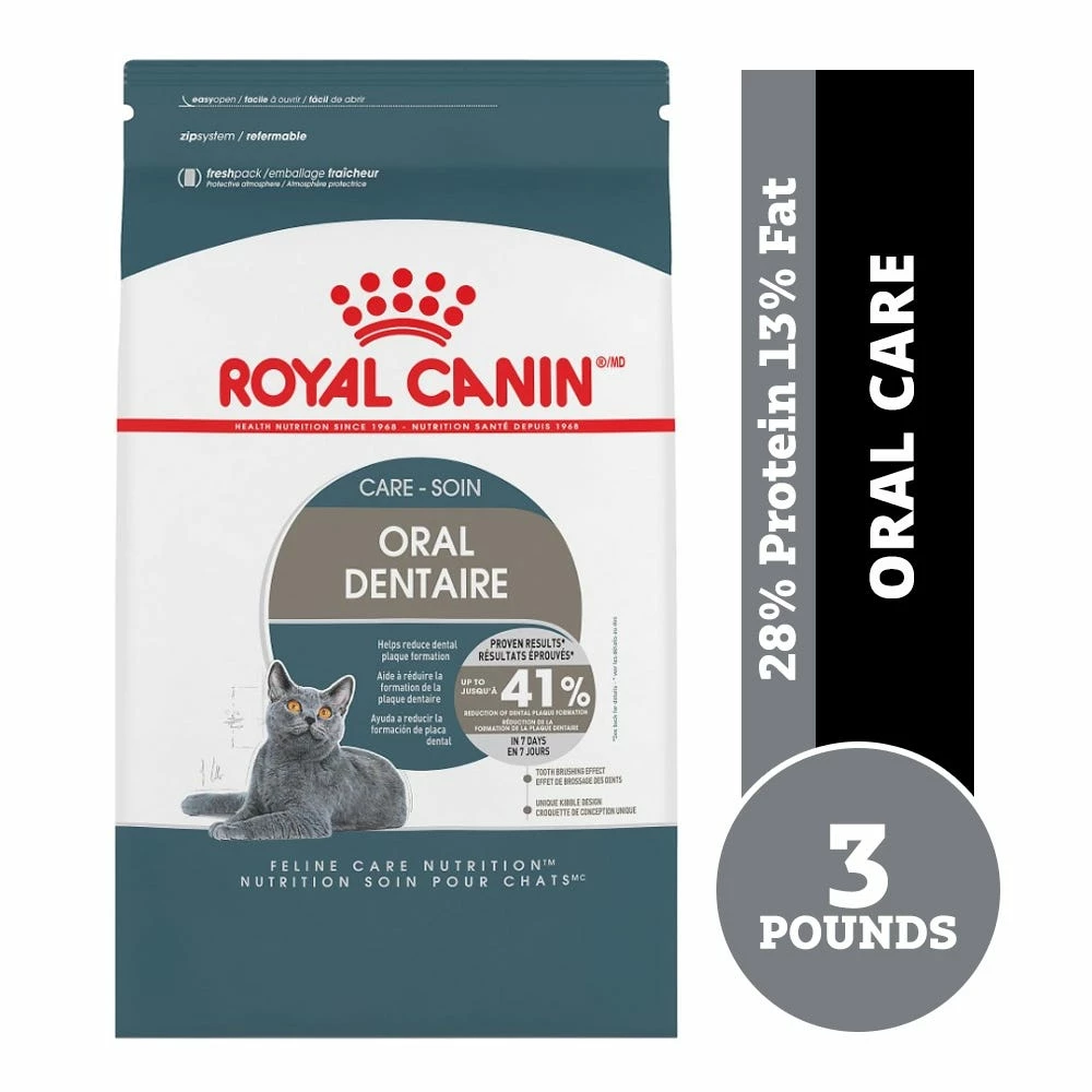 - Royal Canin Oral Care dry cat food provides dental care nutrition for cats 1 year and older