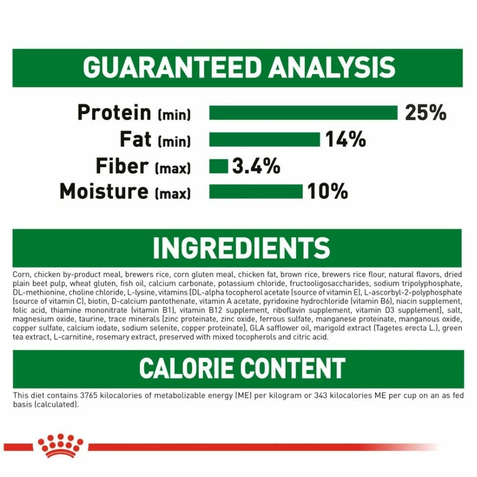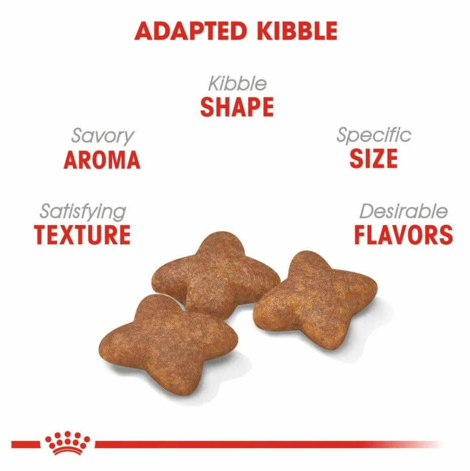 Royal Canin Small Adult dry dog food (formerly Mini Adult) is precise nutrition specifically made for small dogs 10 months to 8 years old weighing 9–22 lbs. A small dog has some big nutritional needs. That’s because small breed dogs actually have higher energy requirements than big dogs. Not only that, these mini pooches have unique traits—and are pretty picky when it comes to what’s put in their bowl. Royal Canin Small Adult dry dog food is formulated to meet the unique nutritional needs of small breed adult dogs, as they actually require higher levels of calories per pound of body weight than large dogs. L-carnitine helps metabolize fat to help a dog maintain a healthy weight. Ideal levels of EPA and DHA support healthy skin and a beautiful, shiny coat. Plus, enhanced palatability helps satisfy even the pickiest eaters. Add a variety in texture with Royal Canin Adult Beauty wet dog food. And when a dog reaches their later years, there’s Royal Canin Small Adult 8+ and Small Aging 12+ to help keep them happy and healthy as they age.