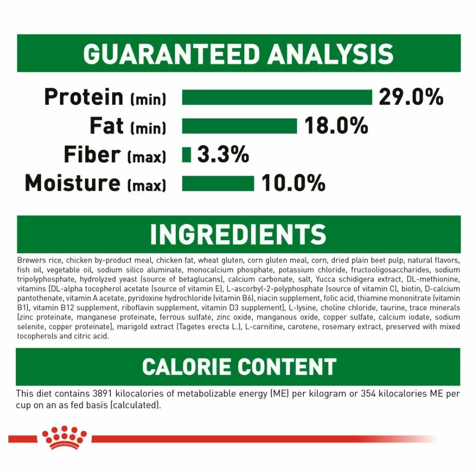 Brewers Rice, Chicken By-Product Meal, Chicken Fat, Wheat Gluten, Corn Gluten Meal, Corn, Dried Plain Beet Pulp, Natural Flavors, Fish Oil, Vegetable Oil, Sodium Silico Aluminate, Monocalcium Phosphate, Potassium Chloride, Fructooligosaccharides, Sodium Tripolyphosphate, Hydrolyzed Yeast (Source Of Betaglucans), Calcium Carbonate, Salt, Yucca Schidigera Extract, DL-Methionine, Vitamins [DL-Alpha Tocopherol Acetate (Source Of Vitamin E), L-Ascorbyl-2-Polyphosphate (Source Of Vitamin C), Biotin, D-Calcium Pantothenate, Vitamin A Acetate, Pyridoxine Hydrochloride (Vitamin B6), Niacin Supplement, Folic Acid, Thiamine Mononitrate (Vitamin B1), Vitamin B12 Supplement, Riboflavin Supplement, Vitamin D3 Supplement], L-Lysine, Choline Chloride, Taurine, Trace Minerals [Zinc Proteinate, Manganese Proteinate, Ferrous Sulfate, Zinc Oxide, Manganous Oxide, Copper Sulfate, Calcium Iodate, Sodium Selenite, Copper Proteinate], Marigold Extract (Tagetes Erecta L.), L-Carnitine, Carotene, Rosemary Extract, Preserved With Mixed Tocopherols And Citric Acid.