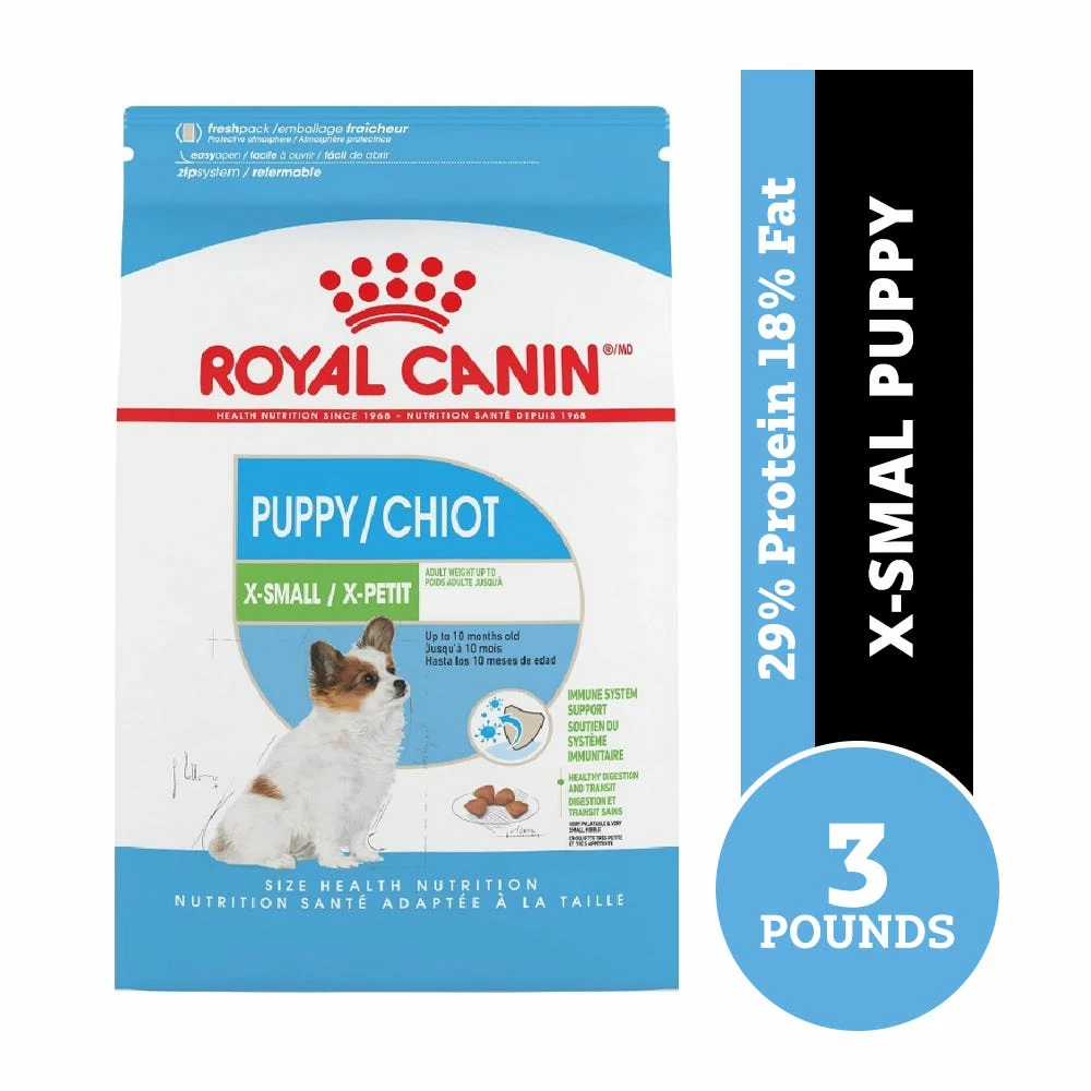 Royal Canin X-Small Puppy Dry Dog Food is tailor-made for your toy breed’s healthy growth and development. It has all the proteins, minerals, and vitamins your extra small dog needs to sustain the intense growth period that happens over the first 10 months of your dog’s life. An exclusive mix of antioxidants and minerals supports healthy development of immune systems and keeps small dog bodies growing strong. A small and tasty kibble is designed for your picky eater’s smaller teeth and also reduces the formation of tartar. And a tailored blend of fiber promotes healthy digestion and optimal stool quality.