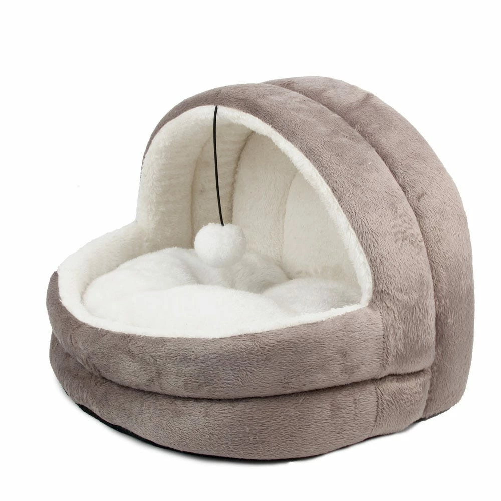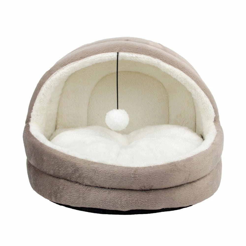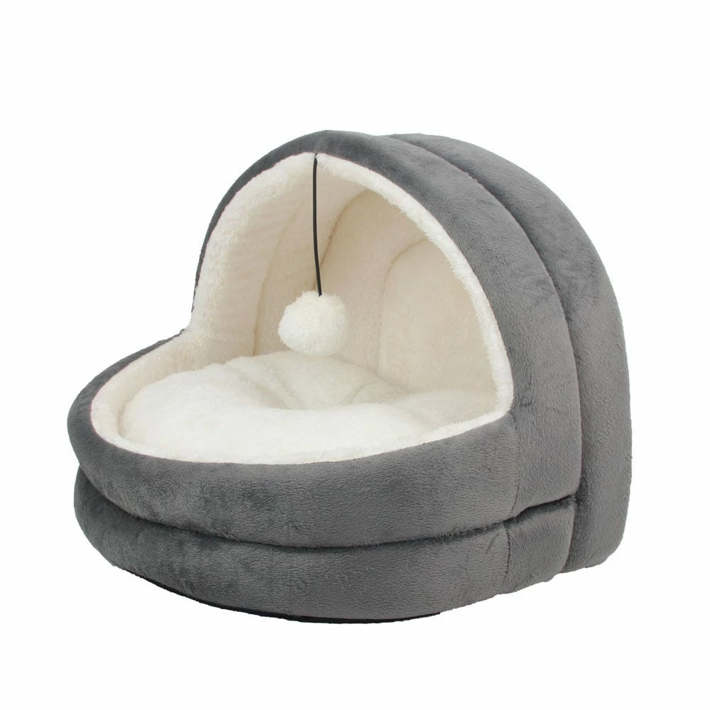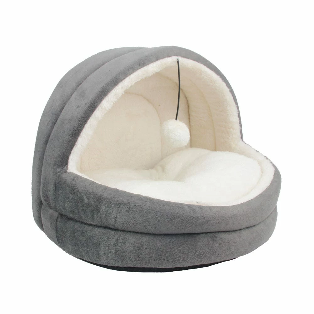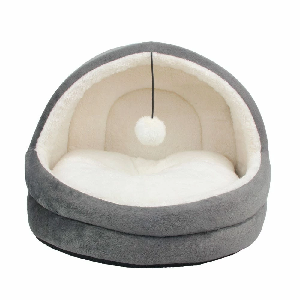This bed keeps your cat feeling safe and sheltered. A plush ball can put a cat back to sleep, as it is a fun toy that can burn the cat’s energy. Well-made cat bed stays stable on floors and won’t collapse on its own. The soft cushion is placed inside of the bed and can be removed for easy maintenance.