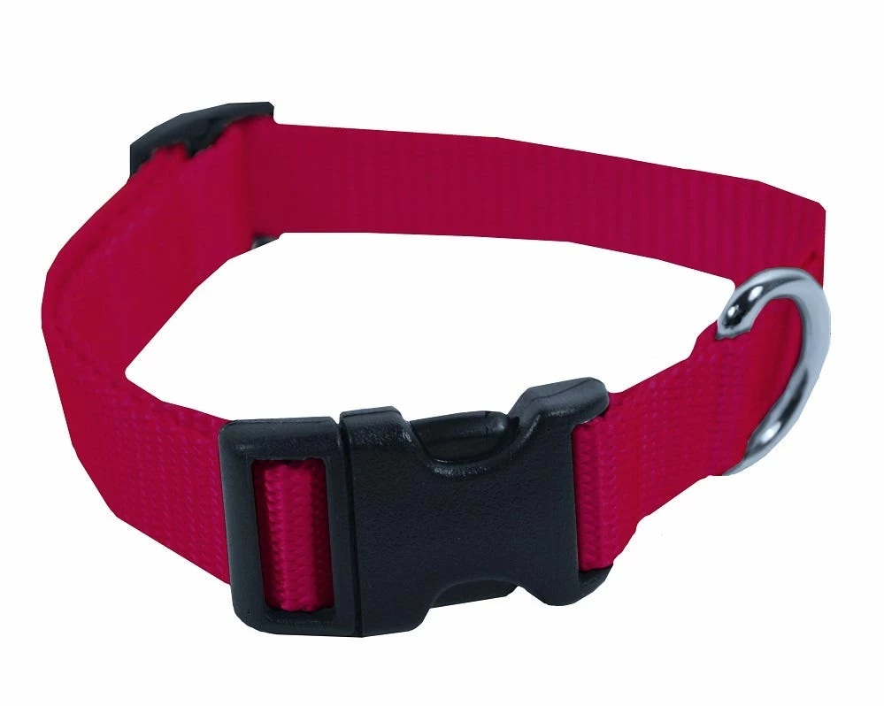 This adjustable collar from Scott Pets has an adjustable slide that ranges from 10″ to 16″. The quick release plastic buckle makes taking this on and off a snap! It is ideal for growing puppies and small breeds. Not recommended for tie-out or leashes.