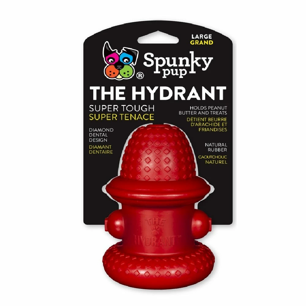 - Spunky Pup’s Rubber Hydrant features thick-walled Rubber construction