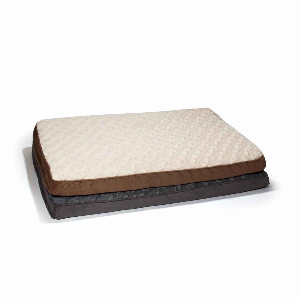 An orthopedic pet bed with a sculptured super plush sleep surface, accented with top row piping and an embossed textured gusset fabric. Orthopedic foam supports joints & muscles, and is ideal for older dogs to help provide superior comfort.