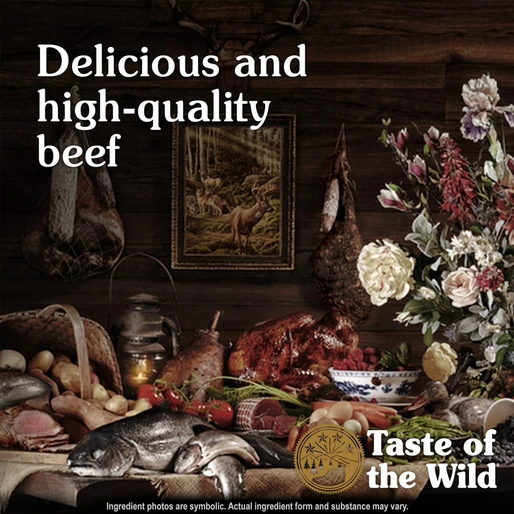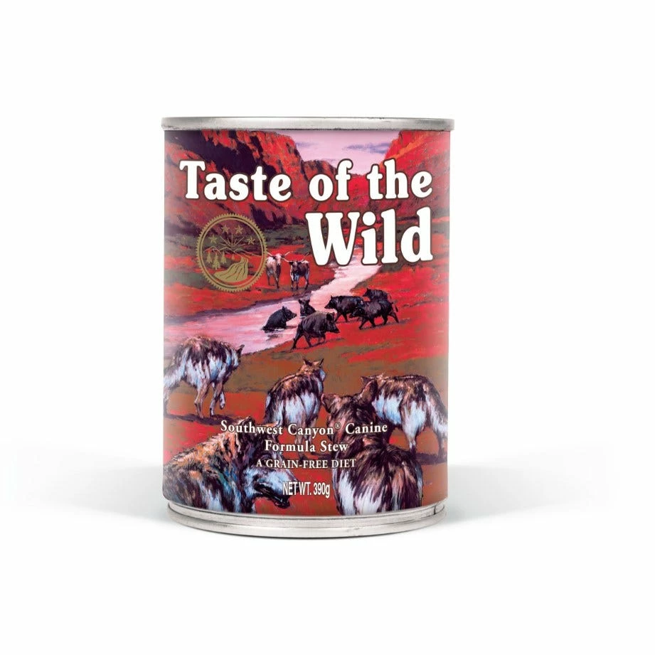 A great tasting complement to the dry Taste of the Wild recipes, the Southwest Canyon Canine Recipe with Beef in Gravy will satisfy even the most finicky dogs. This complete and balanced formula can also be fed as your pet’s sole diet. Made with wild boar, this formula offers a taste sensation like no other. Contains peas, a great source of nutrient-rich energy. Supplemented with vegetables and fruits, this formula delivers antioxidants to help give your friend a healthy lifestyle.