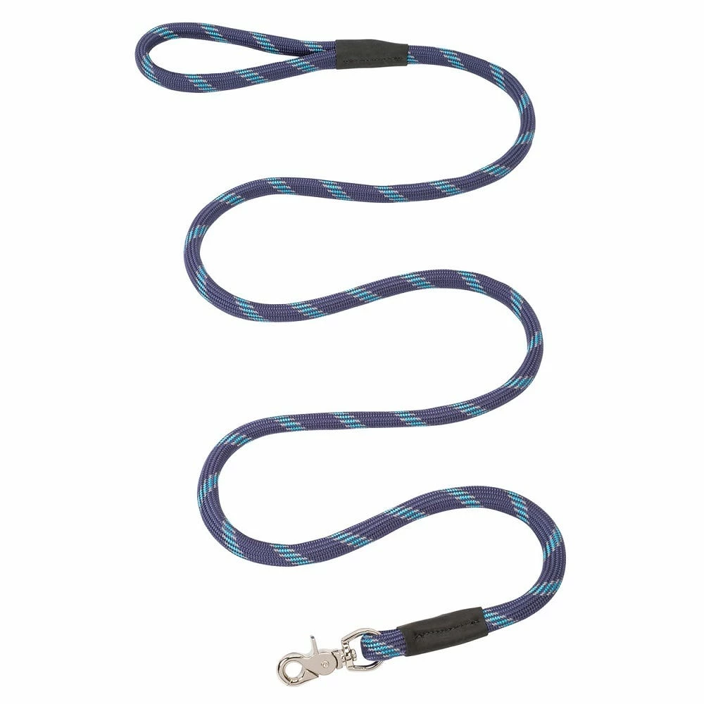 In color combinations to match our line of Terrain D.O.G. Collars, this leash is made from round braided climbing style nylon rope with a polypropylene core to withstand rugged use. Top grain leather keepers cover the sewn ends for a finished, refined look. Scissor snap for easy attachment to collars and harnesses.