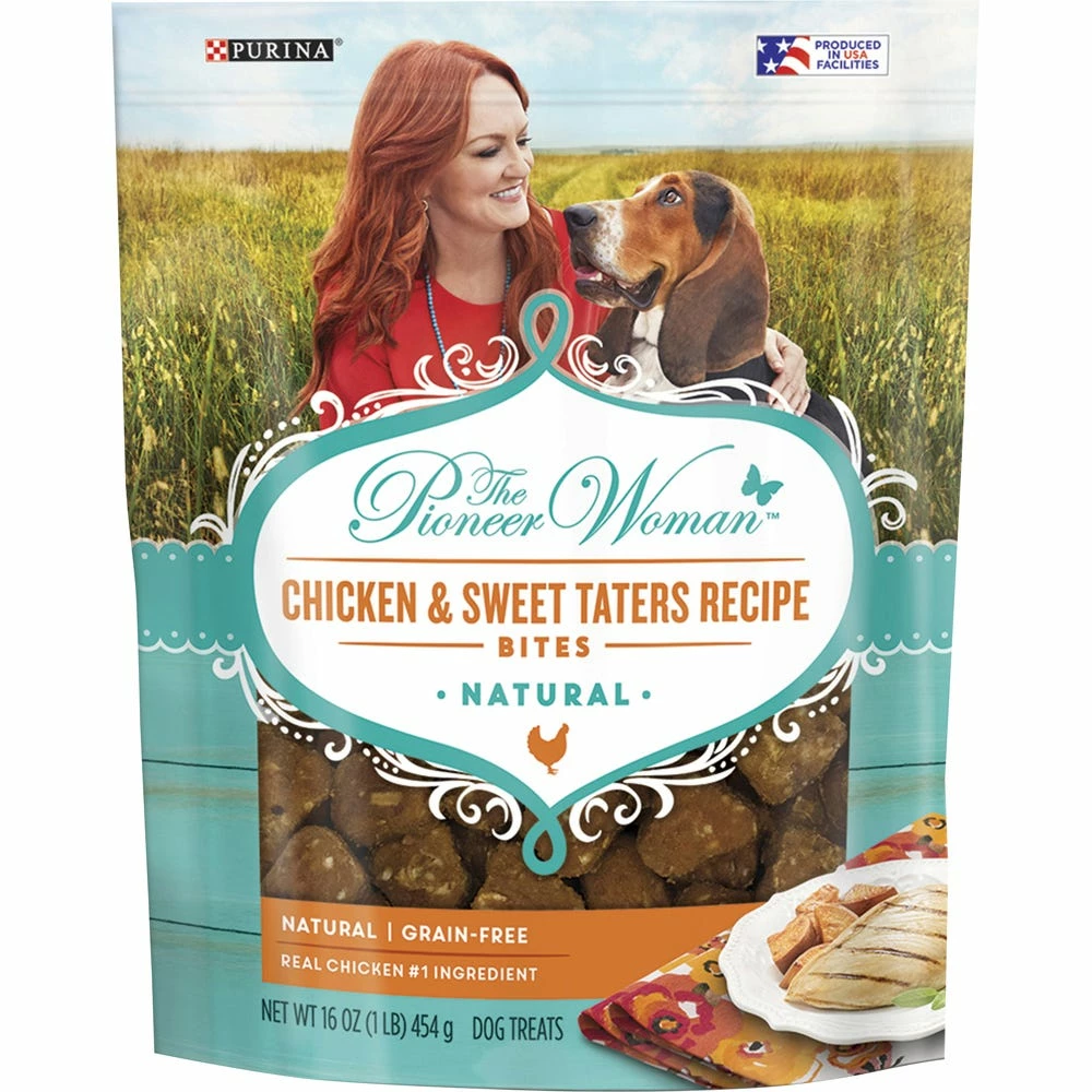 Feed your pup the real wholesome goodness of The Pioneer Woman’s Natural Chicken & Sweet Taters Recipe Bites Grain-free Dog Treats! These grain-free rewards are crafted in USA facilities with real chicken first along with real sweet potatoes for a savory-sweet balance your BFF will go head over tail for! Inspired by Ree Drummond’s recipes, these bite-sized rewards are made with only simple, natural ingredients. And since your dog’s rewards should be as real as the bond you share, you won’t find any artificial colors, flavors or preservatives in here!