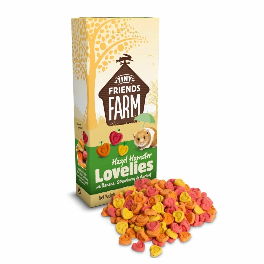 Treat your furbaby to a delectable snack with the Tiny Friends Farm Hazel Lovelies Hamster & Rabbit Treats. These treats are crafted with grains, fruit and veggies—including banana, strawberry and apricot —for a treat that’s both nutritious AND delicious. They’re also baked to perfection with a mouthwatering, crunchy texture. These treats can be hand fed, which is great for bonding with your friend. They can even be stowed in your pet’s enclosure to promote foraging. Rabbits, guinea pigs, chinchillas, gerbils, mice and rats will love these !