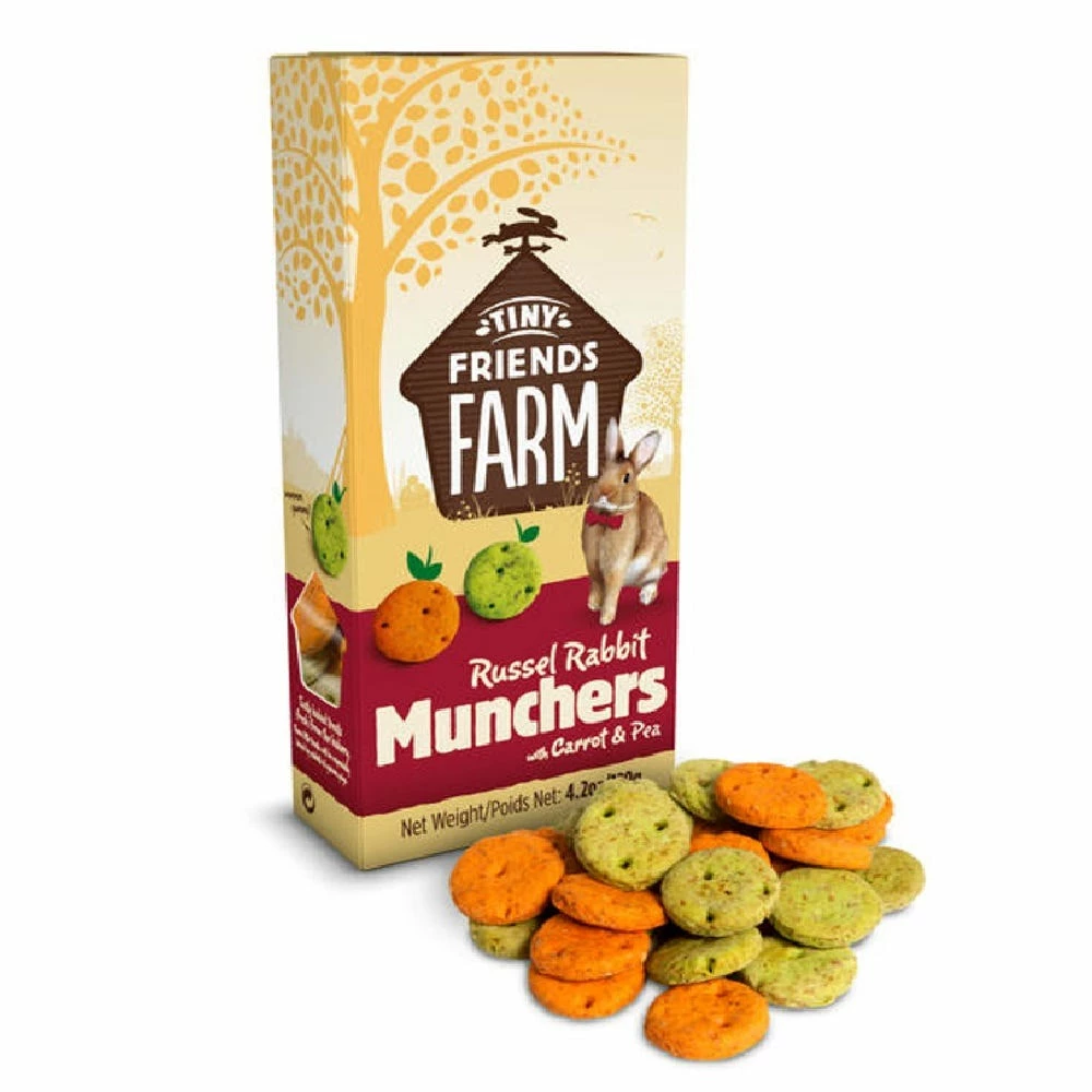 Give your furry family member something scrumptious to nibble on with the Tiny Friends Farm Russel Munchers Rabbit & Guinea Pig Treats. These treats are baked to perfection with a mouthwatering, crunchy texture. They’re crafted with grains, fruit and veggies like carrots and peas for a treat that’s both nutritious AND delicious. These treats can be hand fed, which is great for bonding with your friend. They can even be stowed in your pet’s enclosure to promote foraging. Guinea pigs, chinchillas, hamsters, gerbils, mice and rats will love these delectable bites!