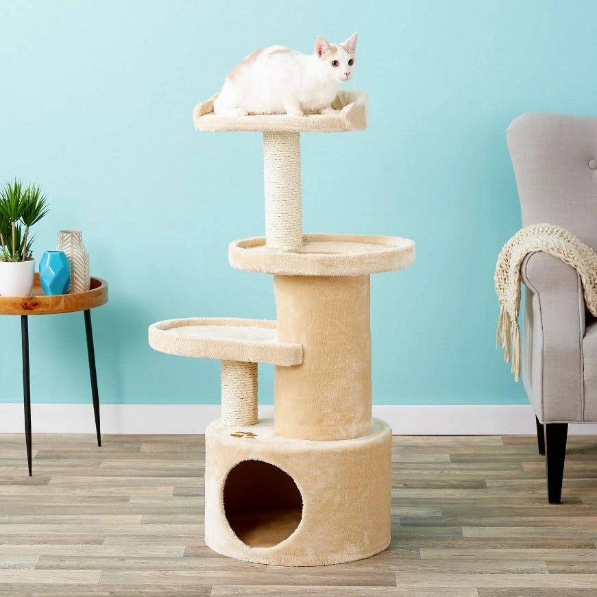 - Materials: Plush, fleece, sisal, MDF wood