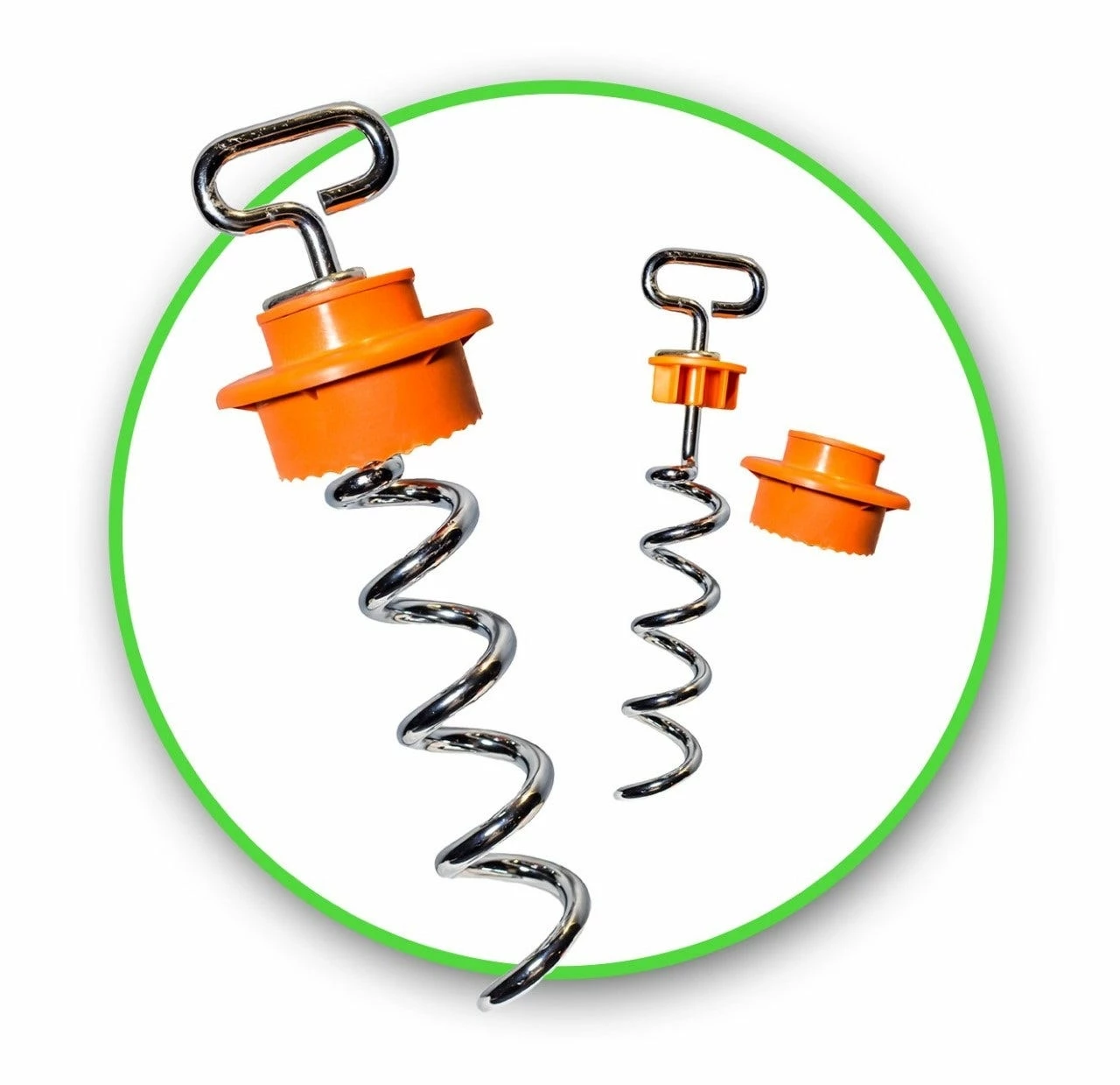 The Intelli-Stayk is built to hold the strongest dogs. The Surface Lock significantly reduces movement at the surface so the stake stays secure in the ground. This unique design reduces the ability of a dog to bend, break, or pull out of the ground and is a “one size fits all dogs” stake. Large dogs hook directly to thick 10 mm steel shaft. For leashes with smaller clasps (small dogs) a ring adapter is permanently affixed to the shaft. If you are tired of replacing your stake or ones that pull out of the ground, this is for you.