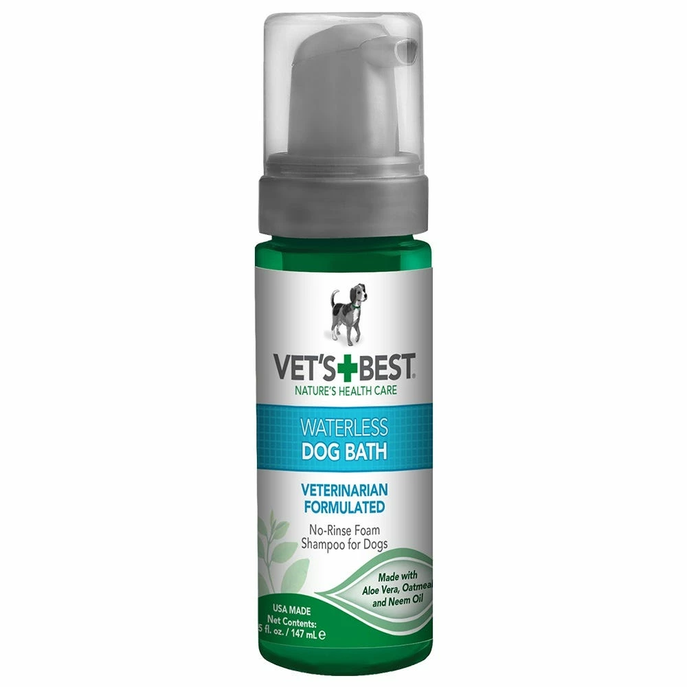 - Vet’s Best Waterless Dog Bath is a no-rinse dog shampoo that moisturizes skin and coat between baths.