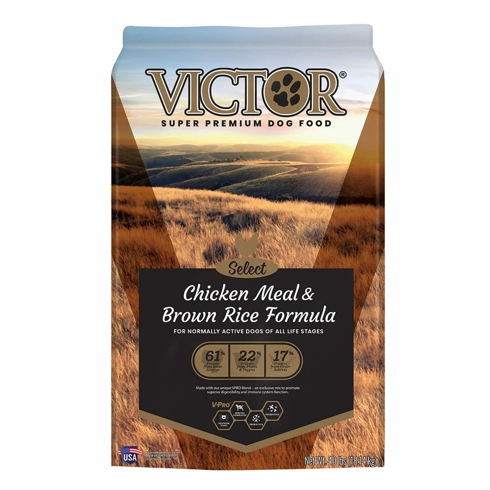 With premium-quality chicken meal as the primary protein source, VICTOR Chicken Meal & Brown Rice Formula is formulated to nutritionally support dogs with normal activity levels. It is easy to alternate SELECT formulas to offer your dog multiple flavors throughout the year. This formula is appropriate for large and small dogs at all life stages.