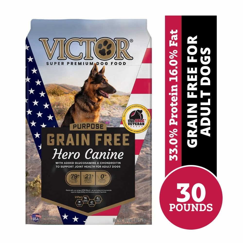 VICTOR Grain Free Hero Canine for Dogs is formulated to meet the nutritional levels established by the AAFCO Dog Food Nutrient Profiles for Adult Maintenance.