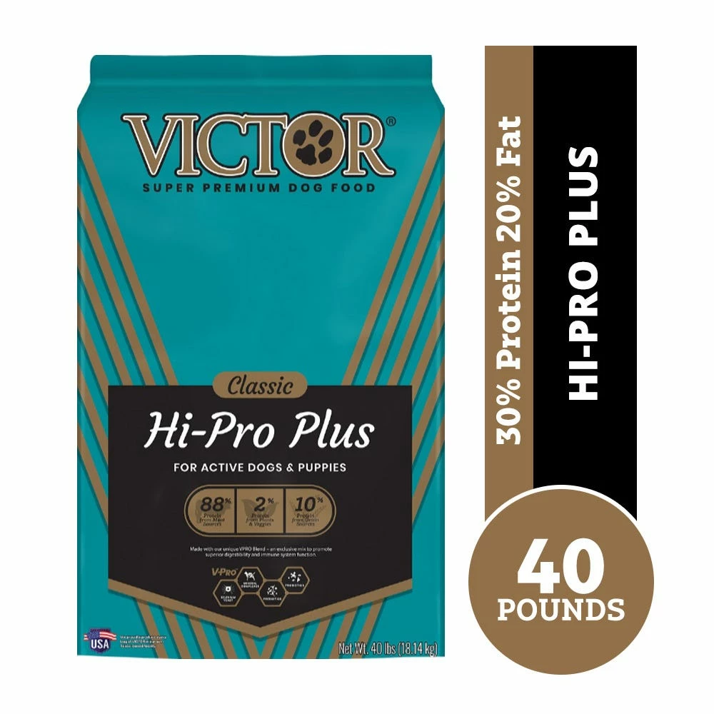 VICTOR Hi-Pro Plus for Dogs is formulated to meet the nutritional levels established by the AAFCO Dog Food Nutrient Profiles for All Life Stages, except for growth of large size dogs (70 lb. or more as an adult).