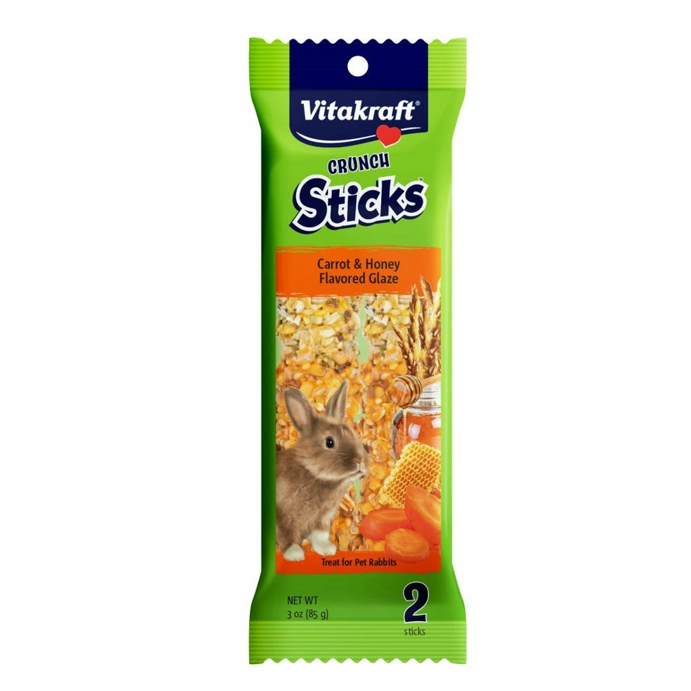 Treat your rabbit to a crunchy, long-lasting baked treat stick made with whole grains, carrots, safflower seed. Vitakraft Crunch Sticks don’t just taste good: they also promote important chewing needed to wear down rabbits’ always-growing teeth for optimum dental health. The triple-baked layers make this treat last longer, with a natural wood chew center that provides hours of chewing fun long after the treat part is gone!