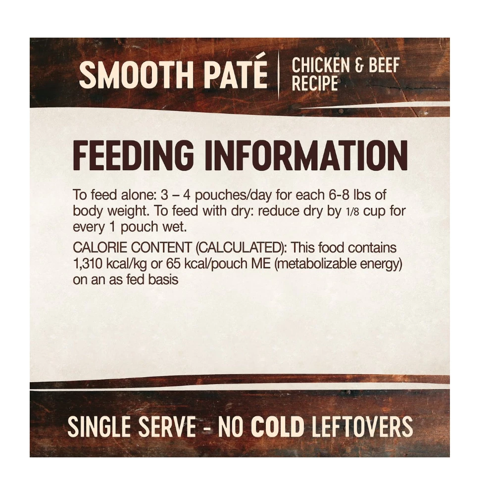 Pouch Size Feeding Alone Feeding with Dry 1.75 oz. 3-4 pouches per day per 6-8 lbs. bodyweight Reduce dry by 1/3 cup for every 1 pouch wet