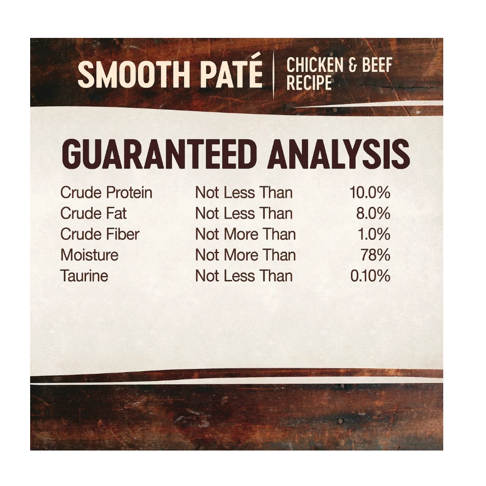 Crude Protein (Min.) 10.0% Crude Fat (Min.) 8.0% Crude Fiber (Max.) 1.0% Moisture (Max.) 78.0% Taurine (Min.) 0.10%