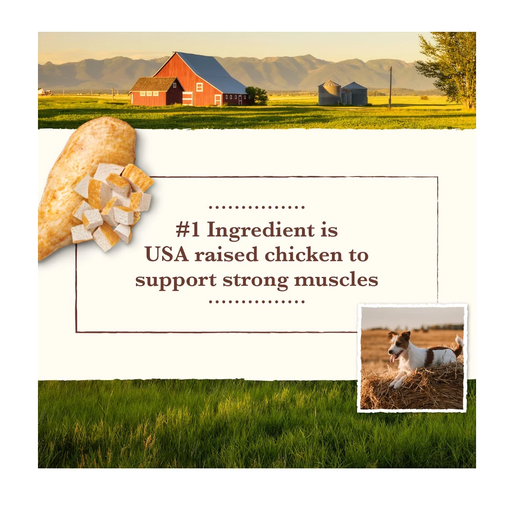 - Paw-fectly balanced nutrition from the farm that starts with real, USA-raised chicken first.