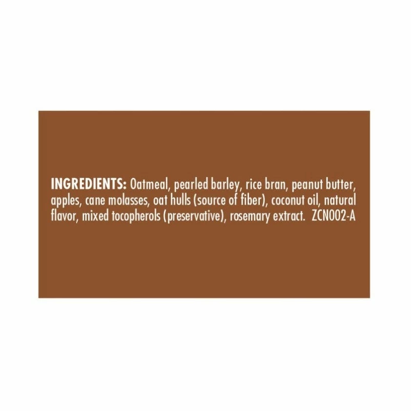 Oatmeal, Pearled Barley, Rice Bran, Peanut Butter, Apples, Cane Molasses, Oat Hulls, Coconut Oil, Natural Flavor, Mixed Tocopherols, Rosemary Extract